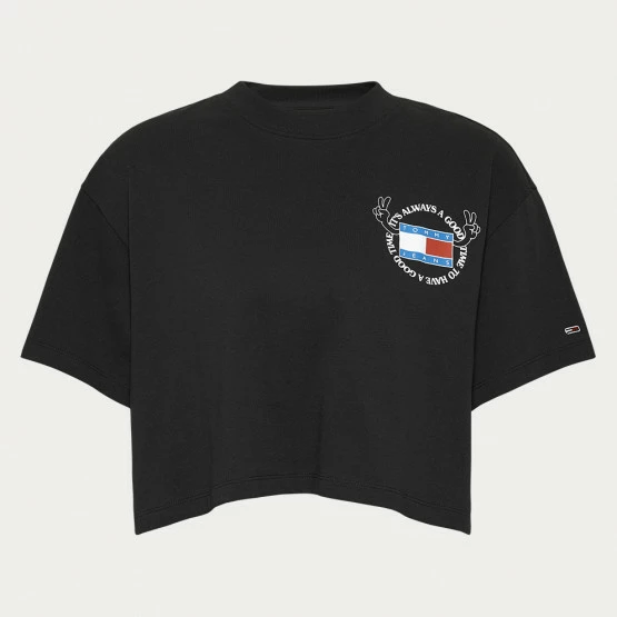 Απόκτησε τη θετική ενέργεια που χρειάζεσαι μέσα στη μέρα σου με αυτό το T-shirt από την Tommy Jeans. Είναι κατασκευασμένο από απαλό ανακυκλωμένο βαμβάκι που σε κρατάει άνετη όλη μέρα η crop γραμμή του και η ελαφρώς oversized εφαρμογή του θα ταιριάξει τέλεια με τα ψηλόμεσα παντελόνια σου!